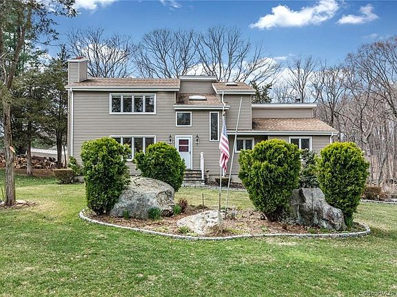 Located alongside the picturesque Farm Mill River in the Huntington neighborhood minutes from town green, this meticulously maintained colonial/contemporary is nestled on a private cul-de-sac, overlooking a private level landscaped yard with just under an acre of open property. Entering the main floor of house the floor plan flows from the foyer, into the living room with fireplace, connecting to a formal dining room with sliders exiting onto the deck overlooking the patio, garden beds, fruit trees, and the Farm Mill River that runs along 2 sides of the property. The large kitchen with an eat-in area boasts granite counters, stainless appliances, and flows effortlessly into the sun filled family room with vaulted ceilings with skylights and a wood-burning stove, then to the office room. Upstairs are two bedrooms, which share a full bath, and spacious Master bedroom which has en-suite bath and a walk in closet. This property has a full unfinished basement, a 2 car under garage, and a separate detached 2 car garage set back in yard.