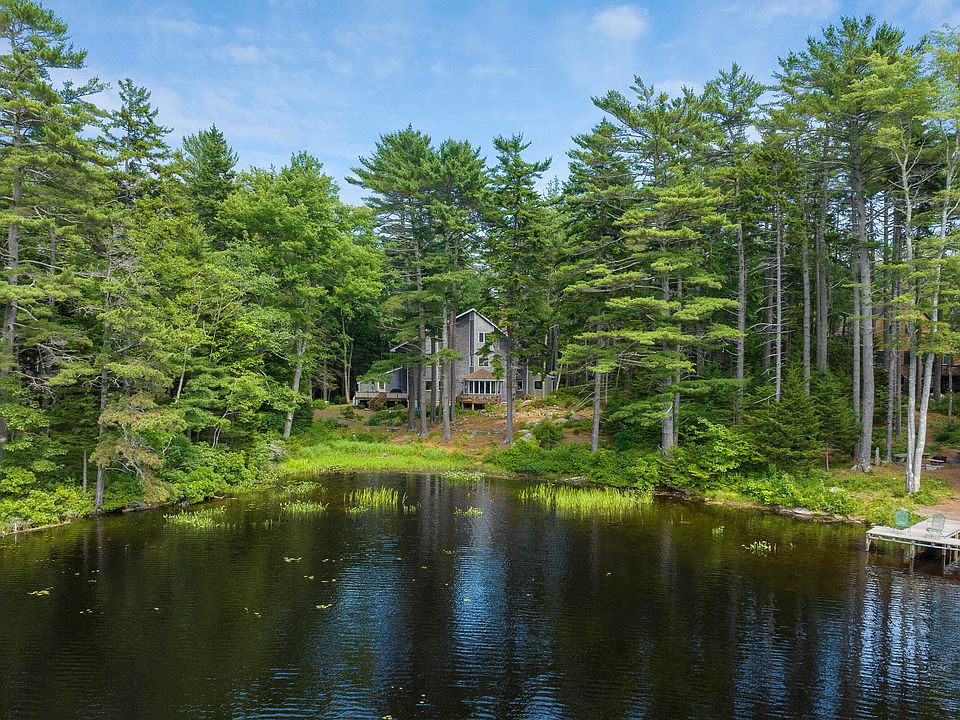 A mile and a half from downtown Boothbay Harbor, the Appalachee community is a wooded oasis on the shores of Appalachee Pond and Linekin Bay. This 3+BR/3BA year-round home features pond views & frontage, and offers amazing spaces for entertaining, complete with large rooms with high ceilings, a two-sided fireplace, built-in bar, and accommodations for everyone. The primary suite is spacious and delivers pond views from both bedroom and bathroom. Other bedrooms are great for family or visiting company, including option connection for families with young children. Beyond the grand entertaining spaces, there is a separate den, sun room, and studio space on the third floor. Appalachee's freshwater beach and saltwater dock deliver the best of both worlds, including swimming, kayaking, fishing, boating, and more. With the Land Trust's Appalachee Preserve to the north and west, a portion of the viewshed and a large habitat block remains protected, forever. Other nearby amenities include the Linekin Bay Resort, Barrett Park, and the Lobster Cove Meadow preserve.