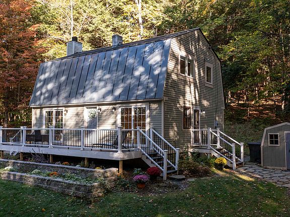 Charming three bedroom, two bath Gambrel on 3.85 acres of Tranquility Nestled on a serene 3.85-acre wooded lot with southern exposure, this updated Gambrel offers both privacy and convenience, just one mile from Quechee Main Street. The property backs up to several hundred acres of undeveloped land, creating a peaceful and private setting. The home features a large, gorgeous patio and a full-length deck, perfect for relaxing or entertaining. Thoughtful updates include all-new second-floor windows, as well as new sliders and resealed glass on all first-floor windows. The first-floor half bath has been converted to a full bath, and new carpeting has been installed throughout. Perennial native plantings and colorful mums add beauty and ease of care to the landscape. This property is fully furnished and equipped, ready for immediate enjoyment, with only a few pieces of artwork excluded. A perfect blend of charm and modern convenience, this home offers an ideal opportunity to enjoy the Quechee Club and the best of the Upper Valley. Don’t miss out on this rare find!