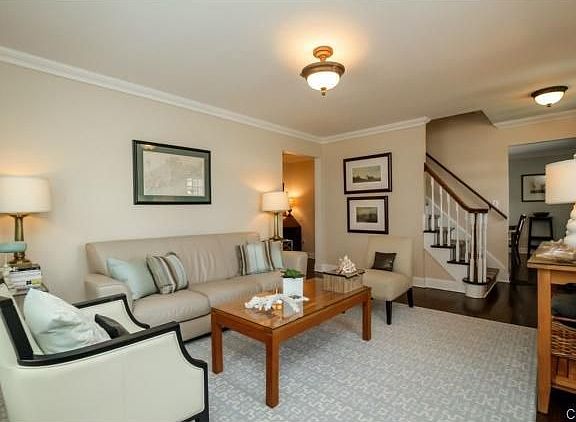 Perfect 'in town' Colonial! Tastefully done 4/5 bedroom, 3 1/2 bath w/richly appointed rooms & quality renovations....Family rm w/fireplace open to dining area w/cathedral ceiling leads to private blue stone patio& quiet yard. Formal dining rm off of kitchen w/breakfast bar nicely located in center of home. Formal living rm& home office w/crown molding&mahogany built ins. 2nd lvl has 2 master bedrooms! & 2 additional good sized Bdrms w/options. Bright hallway leads to finished 3rd level w/ exercise rm&bonus rm&wall of closets, great for storage, Au-pair, reading rm or poss. 5th or 6th BR. part. finished lower level, great for playroom, game room, w/adjacent laundry. Walk to town, train & Rugby Road playground/park (right at end of street)!