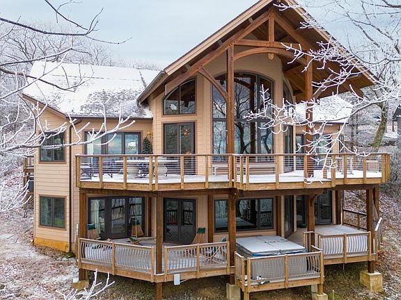 This home is the most unique home built at Wintergreen!It is walking distance to ski slopes,& many other attractions.A Timber Frame home, designed to maximize mnt. & sunset views w/ expansive windows on 3levels.This house is all about natural light w/ a view from every room.Main level designed for living w/ no steps from parking to BR. You will be amazed by the soaring 2story great room w/ huge dining area& built-in bar opening to wrap-around deck w/ sunset views.The gourmet kitchen has a Wolf 6-burner gas stove,2 sinks,2 dishwashers,& a huge amount of cabinet& counter space. 1st floor has the primary BR w/ walk-in closet & en-suite bath. 1st floor has 2 additional BR’s w/ en-suite baths, powder room, laundry,& foyer opening to a mud room w/ cubbies for ski equipment. 2nd floor, has a large sitting room overlooking the great room& a“hidden”office overlooking the primary BR.The lower level has a children’s LR w/ kitchenette, pool table,wood stove,durable cork floor, antique mantle, & African slate hearth wall opening to 2nd large deck w/ hot tub, plus 2 large BR’s w/ en-suite baths & storage. Additional features include tankless water heater,heated driveway(never shovel snow!)It is architecturally designed to be a true dream home.