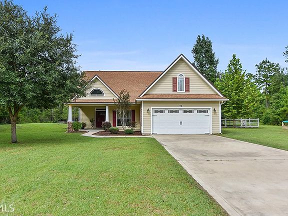 Farmhouse style just 11.5 miles to NSB Kings Bay on over 3 acres! 3 bedrooms downstairs and a bonus room/4th bedroom upstairs. Large covered front porch to enjoy rocking chairs and swing. Beautiful foyer entry has deco stained glass Craftsman style door and walk-in closet. Large living room has vaulted ceiling trimmed in crown molding and is open to the fully equipped kitchen featuring stainless appliances, raised panel varied height cabinets, pantry, high profile counters and breakfast bar. The formal dining room has tray ceiling. The owner's suite is separate from other bedrooms featuring tray ceiling, 2 closets and private bathroom with walk-in tiled shower and double vanity. The other bedrooms are very spacious and have deep closets and tall ceilings. The upstairs bedroom is on a separate AC unit. Other features: 374 sq ft screened porch plus 172 sq ft open patio overlooking private backyard that extends beyond woodline. Apx 1 acre is cleared.