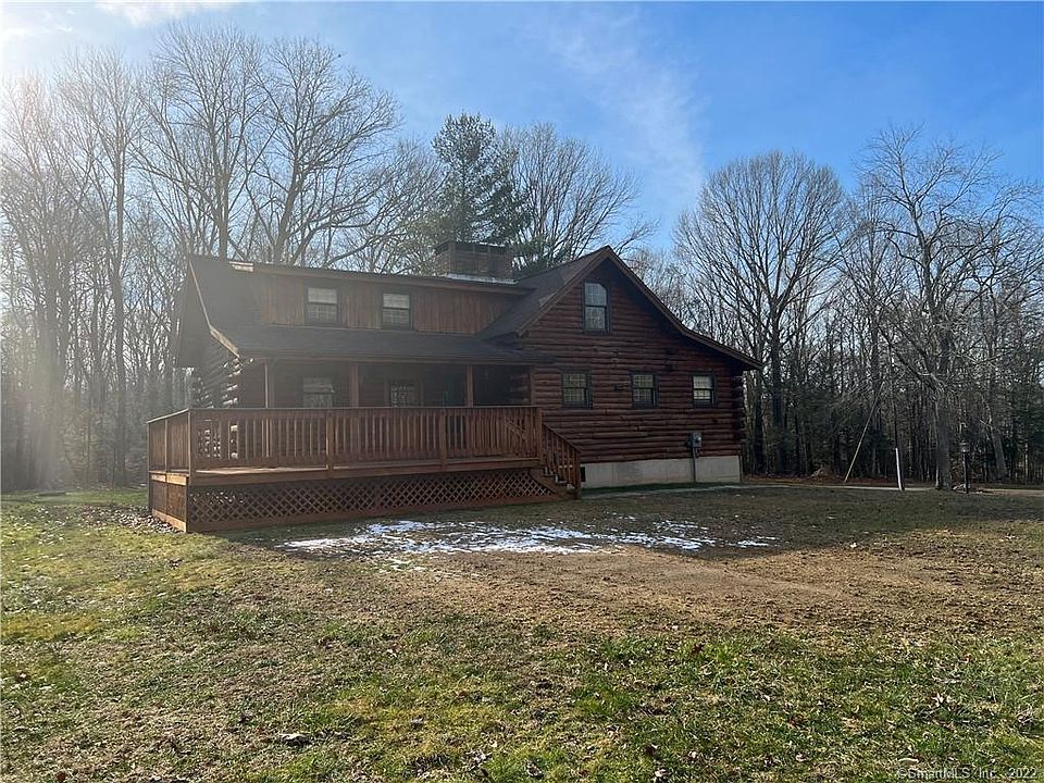ONE OF A KIND LOG CABIN ON A PRIVATE OASIS YET STILL CLOSE TO ALL AMENITIES! Offers 2/3 Bedrooms (3rd Bedroom is an open loft), GORGEOUS Floor to Ceiling Central Wood Burning Fireplace in Living Room, Granite and Stainless Appliances in The Kitchen, Beautiful Front Porch and Oversized Back Deck, Both Great for Entertaining Large Crowds, Large Walk-Out Basement w/Woodstove. Located on Private Country Road w 12+ Acres Yet Still Close Proximity to Casinos, Hwys, EB, Sub-Base Shopping & More. One-of-a-Kind Home! ~ Available for Feb 1 lease start. Please DO NOT drive up driveway prior to scheduling an appt. TY Tenant pays heat & utlities