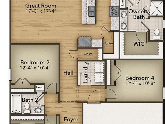 RANCH! RANCH! RANCH! A Perfect Retreat for Entertaining and Relaxation Discover the Redbud, a home designed for those who love toentertain and seek peaceful retreats. The spacious kitchen, complete with a pantry and center island, provides ample room for creating delicious culinarymasterpieces - even if you're ordering takeout! After dinner, retreat to your personal oasis: the Owner's Suite. With a tray ceiling bedroom and a private bath featuring double sinks and a walk-in shower with a closet combination, it's the ideal hideaway from the everyday. When the weather is beautiful, enjoy the porch that seamlessly flows from the Great Room area. Indulge in the ultimate blend of functionality and luxury with the Redbud home.