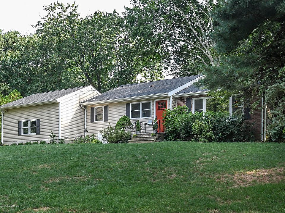Updated 3 bedroom, 2 full bath ranch on nice corner lot in River Plaza. Wood burning fireplace in the living room, perfect to keep you cozy on a cold winter day. Hardwood floors throughout. Beautiful white kitchen has a granite counter top and tile black splash. Ample size laundry room off kitchen. Sliders to large deck semi-private deck. The large yard is shaded and perfect for outdoor activities. Close to great shopping and restaurants in Red Bank, the NYC train. Minutes to the GSP!