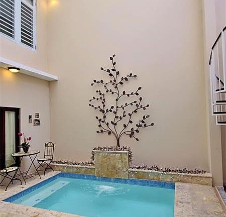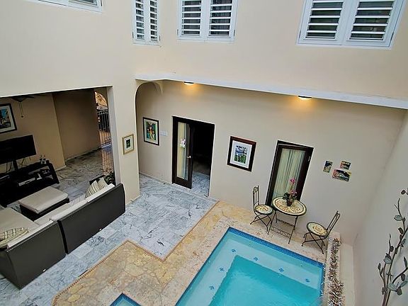 Adjacent to Stella Maris Park, 76 Caribe Street is a single family residence in the center of San Juan's Condado Beach district. One block from the beach, and just off of the park, this property's location in CoBe enjoys the best of what this cosmopolitan district has to offer. The structure, a contemporary home boasting a Spanish traditional architectural design is both spacious and subtle. An indoor jetted pool at the center of the home, leveled bedrooms with sunken living areas, and multiple interior - exterior courtyards are just some of the attributes that make this home spectacular. All bedrooms have bath en suite, with a fabulous double-vaulted courtyard best characterizing the home's master planned and family oriented design. This property features marble flooring throughout, wooden cabinetry , granite counter tops, and a roof-top terrace.