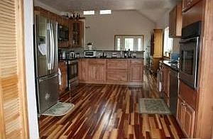 Florissant - Cozy Mountain Cab Beautifully crafted home on over two acres with great views & private location. Stunning Brazilian koa wood floors, dramatic great room with vaulted ceilings, pellet stove, great light and sunshine throughout. Huge gourmet kitchen with extensive cabinets, granite counters, breakfast bar,and adjacent laundry area. $184,900