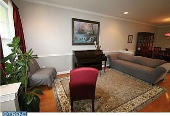 MT LAUREL. A truly one of a kind beauty! 3 bedroom, 3.5 baths, 9 ft ceilings, 2 story family room with gas fireplace, crown molding in living room and dining room. Hardwood floors throughout the house, huge eat in kitchen with 42' cabinets and corian countertop. Magnificent finished basement with hardwood floors, office, full bath, full size windows, full movie theater with top of the line surround sound system (stays with the house!). 2008 sq ft not including the 1100 sq ft basement. Immaculate. Back yard backs up to open space! Owner responsible for lawn maintenance and snow removal. Close to Rt 295, NJ Turnpike and Rt. 38.
