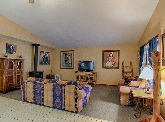 Don't miss this amazing value for a cozy mountain getaway that's nestled in the forest with stunning mountain views. This single level home has open great room design with a spacious living, dining and kitchen for your family gatherings. The wrap-around deck provides maximum outdoor living and plenty of privacy. Two spacious bedrooms are currently set up to sleep eight. A gentle driveway provides easy access. This is a well loved and well maintained mountain cabin and is sold furnished and ready for you to start making memories.