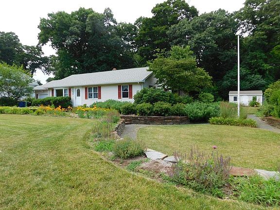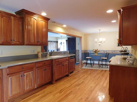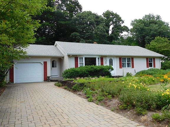 DELIGHTFUL inside & out! This ONE OWNER 3 bedroom Vinyl sided Ranch offers spectacular kitchen with Cherry cabinets & Corian counters. Open layout to Familyroom addition that leads to garden filled back yard w/ screened in gazebo & patio ---perfect retreat after busy work days!! Roof is 2 YRS old, PELLA windows, Central air 2003, & newer heating system. Familyrm brick fireplace has vents- perfect for chilly nights. Built in dining/game table nook in familyroom.There's a sprinkler system, a stone pavor driveway, Goshen stone side entry, pathway & garden walls. Kitchen appliances remain. Spacious rooms. Kitchen, livingroom & bedrooms have hardwood floors. A joy to see, Call now!!