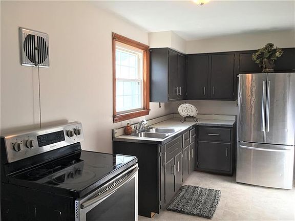 Move in Ready! Updated adorable 2 story, 2 bedroom, 1 bath home. Keep the young ones safe or contain pets in the rear fenced yard. New extended size gravel driveway in front of 1 car detached garage. Light, bright and airy inside with nice sized rooms and central air throughout. Freshly painted. New neutral carpeting on main floor and up steps. New lighting fixtures. New kitchen floor. Open concept main floor. House is on a quiet brick road.