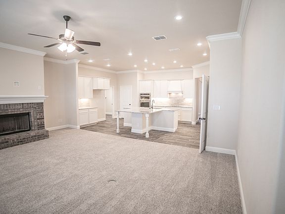 Open concept living area with a separate formal dining room, 10 foot ceilings in the entry, master bedroom and main living area, 4 bedroom, 3 bath, brick on four sides ranch home with a covered patio.