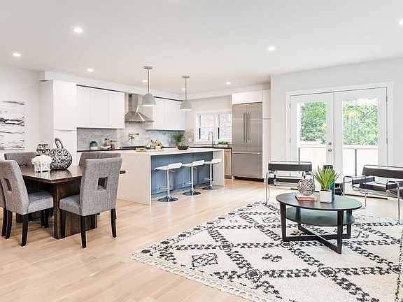 This gorgeous townhouse features an open floor plan with beautiful finishes throughout. The first floor has a sleek kitchen with Thermador stainless steel appliances including a 6 burner stove, luxurious pendant lights, white cabinetry and a sophisticated center kitchen island. The luminous first floor has high ceilings, hardwood floors and is an ideal space for entertaining. There is a deck off of the kitchen and half bath to complete the main level. On the second floor there is a master suite with a magnificent ensuite shower and 3 additional bedrooms. Laundry is also located on the second floor. Additional bonus space is located on the lower level with a full bath and direct access to the garage. This stunning property is ideally situated within proximity to the green line (D) train, the Longwood medical area, Boston and all of the shops and restaurants that Brookline has to offer.