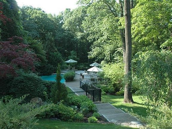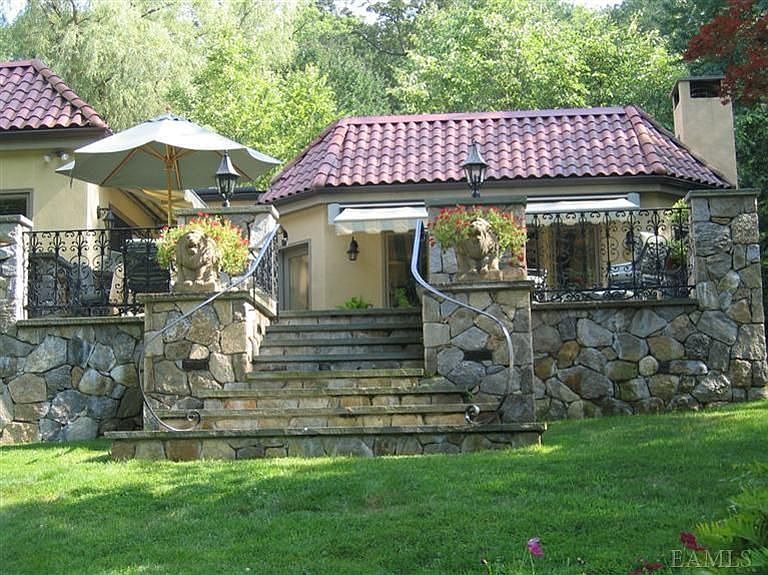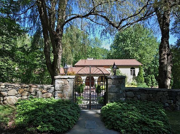 The epitome of sophistication & style, this spectacular gated home has been re-done from top to bottom. Over 4 beautiful, private acres w/gunite pool & magnificent gardens. An oasis both inside & out w/romantic courtyard, arches, natural stone & hardwood floors. Lovely formal rooms, beautiful Great Rm w/15 ft ceiling, radiant heat & furniture-quality built ins, Great Chef's Kitchen & Master Suite, this home is worthy of Architecural Digest. LL w/guest apt/maids quarters. Abuts conservation land.