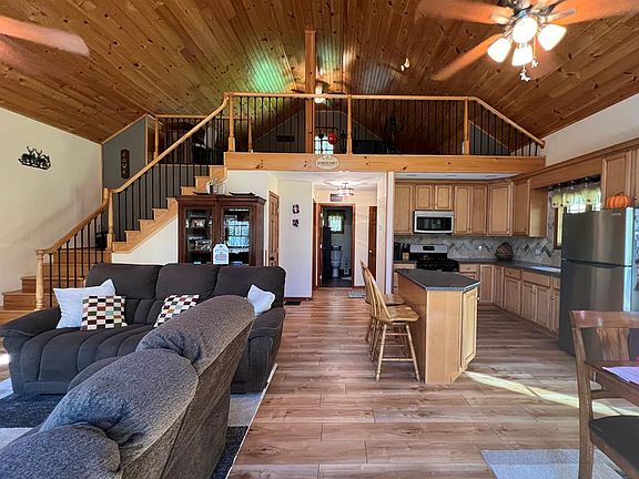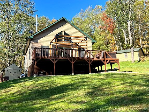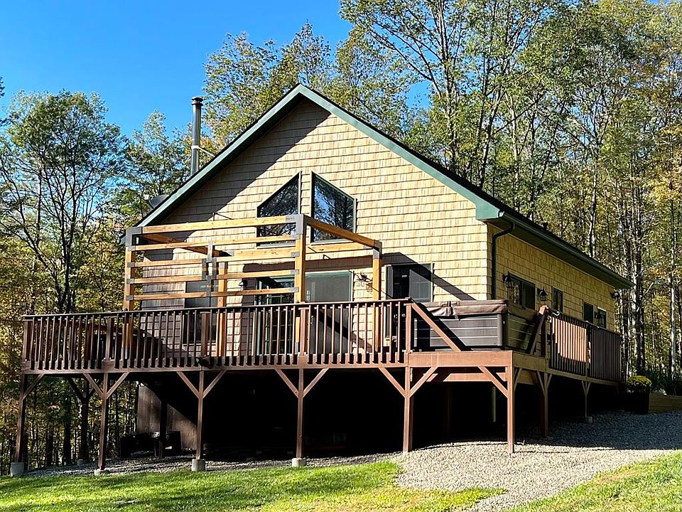 Built in 2008 as a cabin, the current owner has made this a year round home. If you love the outdoors this is just the property for you! Meticulously cared for, this house is situated on 24 acres and is absolutely beautiful. Throughout the 24 acres you will find plenty of woods, trails and even a stream. Step inside this cedar shake home and into a large foyer which offers your laundry area, steps away is a brand new bathroom featuring a custom tile walk in shower, then your first floor bedroom. Down the hallway is the open concept, vaulted ceiling living, dining and kitchen areas. Kitchen offers hickory cabinets and a gorgeous tile back splash. Dining area is large and steps out onto the wrap around deck with hot tub, Living room offers a wood burning stove for those cold winter nights. The 300 sq ft loft area could serve as a another bedroom or additional living space. Basement could be finished into additional space if needed, Too many extras to list, you have to see this one!