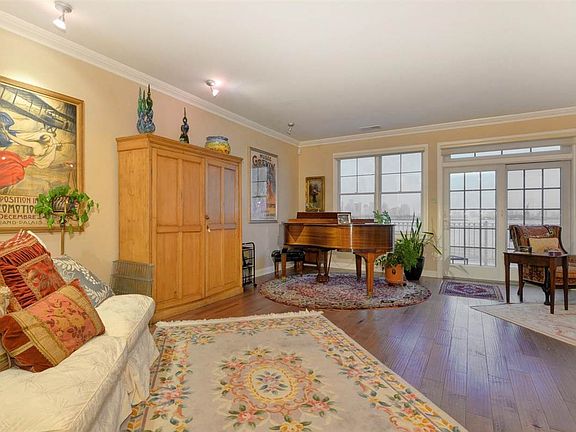 Location Location Exquisite DIRECT NYC VIEWS including Statue of Liberty, Empire State Bldg and Hudson River. Live like royalty in this 3400 SqFt 3 Br plus den town home with all the comforts you deserve. The lower level has a stunning entrance-way leading towards your first living room which currently has custom built in desk and cabinets plus a good size den that could be used as a 4th br. This floor also leads to your private patio oasis. 2nd floor features upgraded eat in chef's kitchen with custom cabinets and backsplash, granite counters and is equipped with GE Monogram stainless steel appliances. Exit the kitchen to your formal dining area and 2nd living room which is separated by a 2 sided gas fireplace. Your patio oasis is not enough.. then exit the living room to your 2nd level deck. 3rd level features 3 Brs. Master Suite has 2 of the largest closets you've ever seen w custom organizers. Other features include upgraded hw floors, 3 zone air system, water filtration system and much more. Community features 24 hr gated security, gym, play area, pool tennis courts, private ferry to NYC and shuttle to path. Look no further as this is not a house but your home.