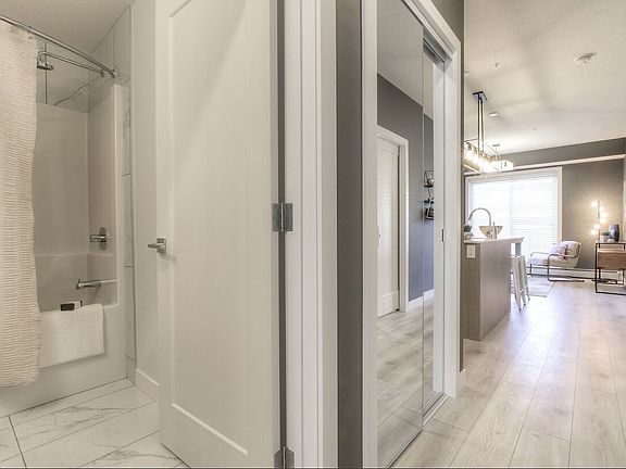 **Please read listing in entirely before inquiring**Well appointed finishes including durable LVN and tile flooring, 9ft ceilings, large central kitchen complete with stainless steel appliances, full height cabinets, quartz tops, handy nook with desk space.Bedrooms are positioned on opposite ends of the unit providing some separation, Primary complete with walk-in and en-suite, second bedroom on the other side of the kitchen across from 4pc bath. Full size laundry positioned in the middle of the unit.Glass railing balcony complete with gas line and mountain views.Crafted by Truman Homes and finished in 2021, this residence offers a luxurious lifestyle with an extensive array of world-class amenities. From a fully equipped fitness center with yoga and spin studios to the tranquil library, owners' lounge, kids' room, state-of-the-art theatre, community garden, inviting picnic areas, and even a pampering pet spa.