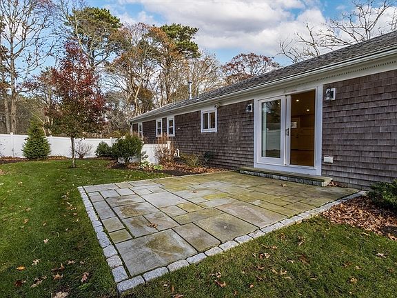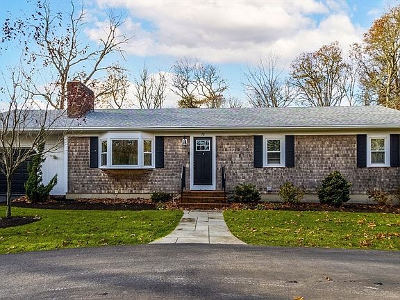 Located just 0.5 miles from the serene shores of Covell's and Craigville Beach, this absolute gem of a property is in pristine condition and ready to welcome you home. This stunning 3-bedroom, 2-bathroom ranch-style home has been lightly lived in since its extensive renovation a few years ago, ensuring modern comforts and impeccable style. Step inside to an impressive open floor plan accentuated by soaring ceilings and a cozy wood-burning fireplace. The attractive board and batten walls add a touch of character, while the beautiful kitchen features a center island, sleek stainless steel appliances, and luxurious granite counters. The elegance continues with hardwood floors throughout and the comfort of central air conditioning. The primary bedroom boasts an ensuite private bath, and two additional bedrooms come with built-in features and convenient first floor laundry. Outside, enjoy the extensive landscaping and the privacy provided by a well-designed fence. The circular driveway off
