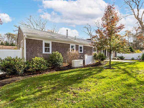 Located just 0.5 miles from the serene shores of Covell's and Craigville Beach, this absolute gem of a property is in pristine condition and ready to welcome you home. This stunning 3-bedroom, 2-bathroom ranch-style home has been lightly lived in since its extensive renovation a few years ago, ensuring modern comforts and impeccable style.Step inside to an impressive open floor plan accentuated by soaring ceilings and a cozy wood-burning fireplace. The attractive board and batten walls add a touch of character, while the beautiful kitchen features a center island, sleek stainless steel appliances, and luxurious granite counters.The elegance continues with hardwood floors throughout and the comfort of central air conditioning. The primary bedroom boasts an ensuite private bath, and two additional bedrooms come with built-in features and convenient first floor laundry. Outside, enjoy the extensive landscaping and the privacy provided by a well-designed fence. The circular driveway offers ample parking, and additional highlights include an efficient irrigation system, generator and alarm system. This property combines coastal charm with modern amenities. Virtual Staging AI.