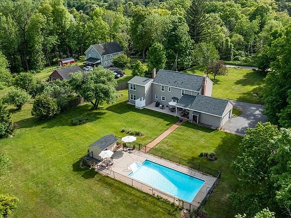 CLASSIC COLONIAL! Sitting back from the road on 1.5 acres of manicured level lawn this home has been lovingly maintained and upgraded. The center hall greets you with a lovely turned staircase. Living room/home office and the dining room are off the foyer all with vinyl plank flooring that runs into the kitchen/family room. The kitchen boasts Shaker cabinets, s/s appliances with an eating area which is open to the family room with a fireplace and access to the patio. Lav with rough plumbing for a shower. The main level has a flexible room that could be a guest quarters, a home office or was previously used as an in-law with a spiral staircase up to a bedroom. The primary bedroom has an upgraded bath and walk-in closet. Three additional bedrooms are on this level. Basement with a Rec room. Entertain and enjoy the private back yard from the patio with a covered area with views of the in-ground pool. Great outdoor shower. 12 zone in-ground sprinklers. New septic 2021. Move-in ready!