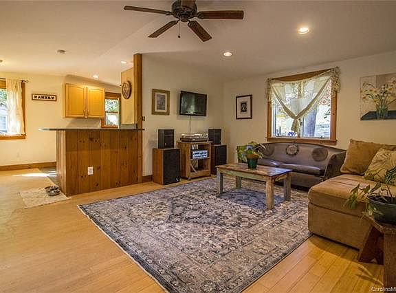 Beautifully remodeled West Asheville bungalow near the end of a no outlet street. Seller is a master carpenter who expanded the original home and added vaulted ceilings, recessed lighting, custom trim, bamboo, slate and travertine tile floors. Updated with Anderson windows and doors, custom kitchen featuring maple cabinets and black pearl granite countertops, huge hot-tub-ready deck and so much more. Open floor plan includes living room, kitchen/dining, laundry in hallway, two full bathrooms with spacious guest room and master with walk-in closet. Built with green standards in mind featuring blown cellulose wall insulation, Icynene ceiling insulation and energy star appliances. This home has exceptional privacy, yet located only minutes from shopping and restaurants on Haywood Rd. Please note the property consists of two parcels, .14 and .04 acres.