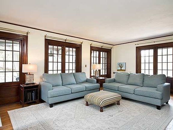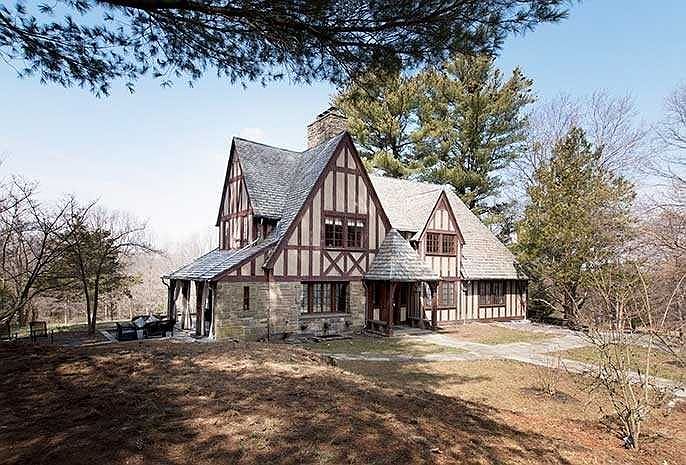 This 2500 square foot home was built by Laura Delano, a favorite cousin of Franklin Delano Roosevelt. Designed by architect John Russell Pope whose work includes the famous Jefferson Memorial, National Gallery, Vanderbilt houses and more. Beauty, quality and craftsmanship pervade every detail. The exterior features stunning gables, steep pitches and a slate roof, with classic Tudor wood & stucco siding accented by stone walls. Beautiful stone porches grace the west and south sides of the home to entertain & enjoy the stunning private grounds, as FDR and Churchill famously did. The interior features a light-filled family room with fireplace, dining room, updated kitchen, generous pantry, three small bedrooms and a full bath on the main floor. Upstairs, a generous master suite with fireplace, changing room with original built-ins, and bathroom. There are two more bedrooms upstairs with a shared bath. The property features an inground pool and 7.46 acres of mature trees and rolling lawn.