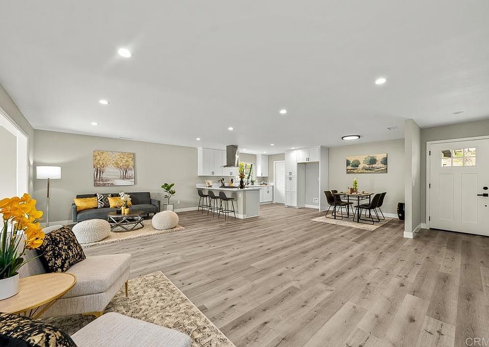 A MUST SEE fully updated SFR in Chula Vista with attached optional bonus room that would be a perfect ADU, Granny Flat or 2nd master. This was a full renovation including new roof, new FAU, new kitchen (counters, cabinets, appliances) with newly opened up great room, all new electrical and plumbing, all new LVP flooring, new windows, new tank-less WH, new doors inside and out (including hardware), new finish electrical and plumbing, new bathrooms including 2x custom showers with tile surrounds and a new bath with tile surround and niche, new fencing, newly installed irrigation, drainage and sod in the back and a large driveway with plenty of extra parking --plenty of room for RV/boat or toy parking. Main house has 3 beds and 2 full baths and the bonus/Adu has a large open layout with full bath/kitchenette and its own separate entry with optional opening into the main house.