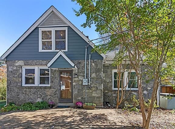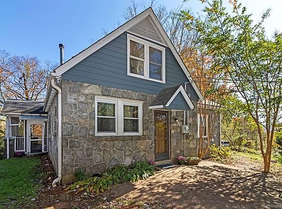 Charming hilltop stone cottage, move-in ready, conveniently located in town with the feel of the country! Granite from the construction of the Blue Ridge Parkway, original narrow hardwood floors, a wide arched doorway, and a wood stove preserve the historic character. Updated plumbing, wiring, and bathroom as well as added closets and blown-in cellulose insulation make it a comfortable, modern home. Currently under construction is an 18'x 21' workshop/garage with two carports and a loft, which will be finished before closing. There is also a rustic plastered shed near the raised garden beds.The land gently slopes away from the house with lots of usable space and beautiful mature trees that provide privacy. Enjoy mountain views in the winter without the hassle of getting snowed in! Neighborhood access to Brevard's multi use path makes it fun and easy to ride bikes downtown or to the Estatoe Trail along the Davidson River. With the gateway to Pisgah National Forest only 1 mile away.