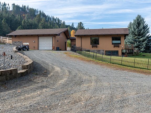 Great setup for horses or mules in St. Maries. This property is fenced and has city water and sewer, with Amazing views. Home is 3 bedroom (1 non conforming) 2 bath, and home has a fireplace. 3,088 sq ft, this beautiful home has plenty of room for everyone, large 28 x 32 detached garage. A very large 60 x 64 Barn, 3 stories with an upper floor entrance from the hillside on a steel rail-car bed, 11,520 sq ft total. Wonderful access with 3 insulated rooms, all on 14.8 acres. Breathtaking views of Milltown.