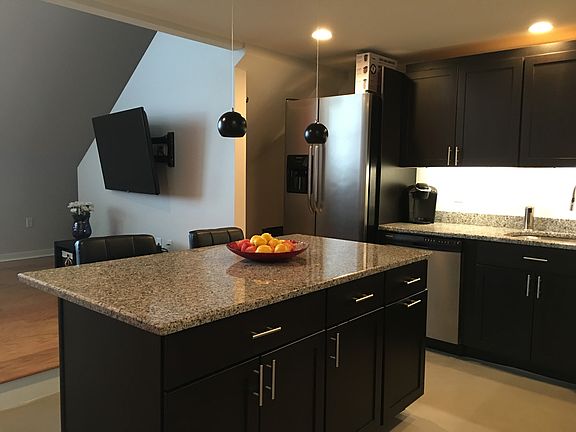 - Kit Dscrp: Countertops - Stone/Granite/Solid, Recessed Lighting, Stainless Steel Appliances, Kitchen Island, Open Floor Plan, Main Level, Sunken