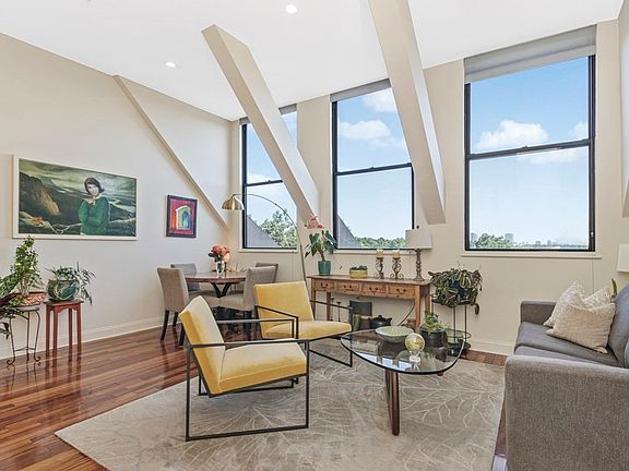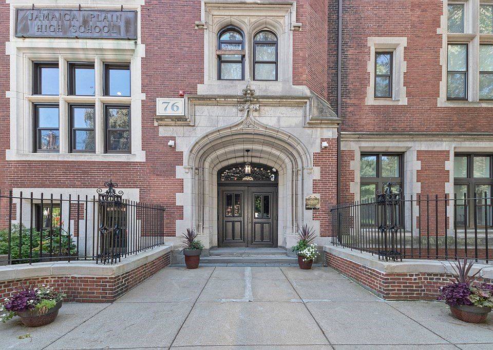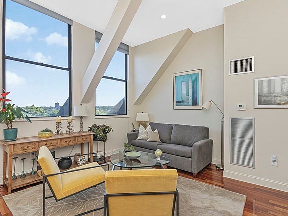 This spacious, light-filled penthouse condo will mesmerize you with its spectacular views of the Boston skyline, and its oversized windows, soaring ceilings, and a striking walk-in closet by California Closets. The updated cook’s kitchen includes an induction range and microwave/convection oven and custom pantry also by California Closet. This unique unit is at the top of the former Jamaica Plain High School building, erected in 1900 in the Tudor Revival style. One of the first schools in Boston to be equipped with electric clocks, today Sumner Hill House continues its embrace of the modern with central air throughout, an elevator, lovely gardens, on-site parking, and a community room equipped with a ping pong table and meeting space. Set in the beautiful Sumner Hill neighborhood, the historic brick residence is a short walk to the Arnold Arboretum and Jamaica Pond, and a hop-skip-and-jump to public transportation and some of the city’s top restaurants.