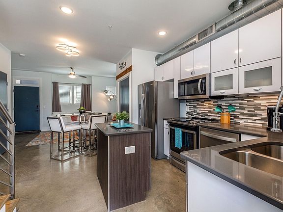 Fully equipped kitchen with stainless steel appliances. Fully stocked with your basic cooking essentials. Stackable smart washer and dryer.