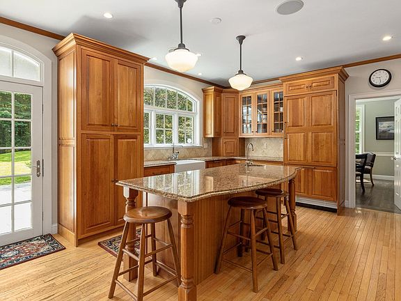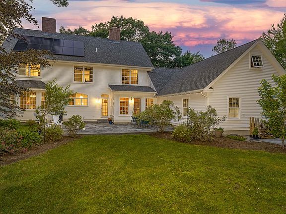 Gorgeous New England Colonial in the heart of Hampton Falls! This picturesque property is privately nestled on two acres and offers the best of both worlds, with classic details throughout blended with endless upgrades and new systems, including Solar, for today’s most discerning Buyer! From the moment you open the beautiful Mahogany front door, you'll be swept away by all that this home has to offer! The gourmet kitchen features a large center island, Viking Professional gas range, Miele dishwasher, and a built-in refrigerator that flows to the dining area and sunroom, filling this home with natural sunlight and views of the outdoors! The main floor continues on to the family room with large windows, a home office with shiplap ceilings and into the living room with rich moldings and a cozy fireplace. Upstairs, you’ll discover four bedrooms, including the spacious Primary Suite with a fireplace, gorgeous new bathroom and walk-in closet! The highlights continue with a surprise bunkroom, designed with handcrafted wood beams using trees from the property! And there’s more! The lower level offers endless possibilities, with slate flooring, shiplap finishes and space for a home gym and a rec room! There is also a 'must-have' mudroom off the 3-car garage that was recently renovated with impeccable details! Outdoors, you will love the sprawling yard and bluestone patio, perfect for entertaining guests! A truly amazing property in a very desirable location! Welcome Home!