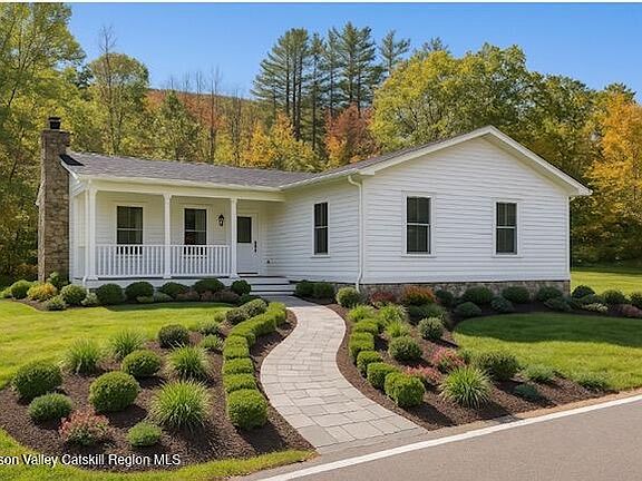 Outside, a large covered front porch overlooks a lush 1.28 acre lot that borders NY State land and steps from the scenic Esopus Creek, offering fly-fishing access and tranquil water views. The home is located on a well plowed county road and just a short walk to the Route 28 bus stop for easy travel to NYC.