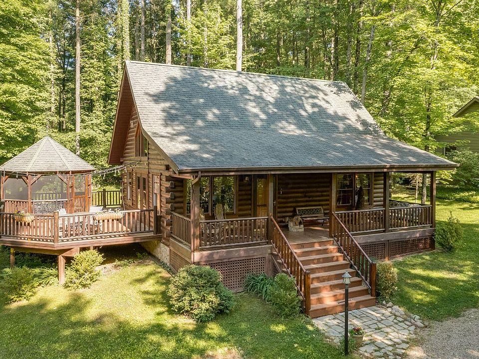 Amazing Log Cabin at Pleasant Hill Lake, in the Idlewood Cottage area!. This 2 bed 2 F. bath cabin sits on a beautiful lot. You would expect, a huge covered porch, open concept a soaring ceiling, a wood burning stove giving off a warm fire for chilly nights, hardwood floors through-out, this cabin has it all! The kitchen is charming with lots of cabinets & neat tile countertops. The loft has a large bedroom with 2 closets & a