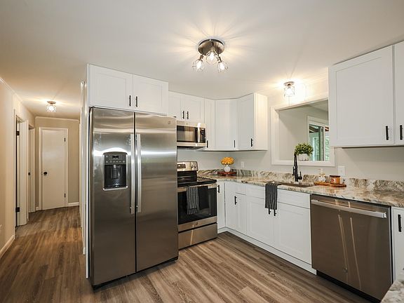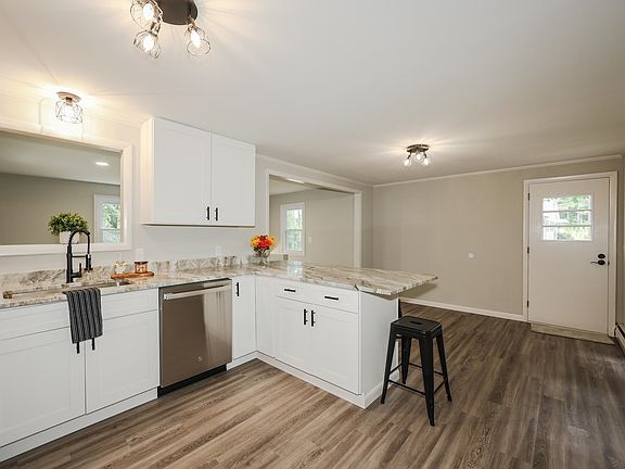 Enjoy all the comforts of single level living in this warm, inviting, and tastefully updated Ranch style home! The brand new kitchen features natural stone counters, SS appliances, and a breakfast bar, updated bathroom has custom tile tub surround. Living area is expanded to the finished lower level with potential for an additional bedroom, home office, family room, or gym; your choice! New and refinished flooring, new windows, and fresh interior paint. Watch the seasons change in your back yard from the screened gazebo, new deck, or enclosed porch! This charming home offers so much! Franklin offers a vibrant downtown experience for dining & shopping. Enjoy the many area parks including Mill City Park on the Winnipesaukee River for a whitewater kayaking adventure! Just minutes to Webster Lake and major roadways.