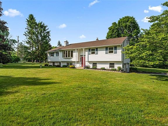 Move right into this meticulously maintained, expansive Raised Ranch sitting on a level landscaped corner acre. This 3+ bedroom, 2.5 bath home offers numerous updates that include windows, central air, oil tank, main bath, well tank, roof and more! Main level offers large eat-in-kitchen, another separate dining area with new slider to freshly painted deck, living room with fireplace, master bedroom and bath, three more bedrooms, full bath and laundry room. The walk out, tiled lower level has half bath, family room, exercise room, utility and storage. Can also be an au pair suite. For the dog lovers, invisible fence surrounds property. Minutes to highway and train makes this house a perfect commuter location. Taxes with STAR are $986 less.