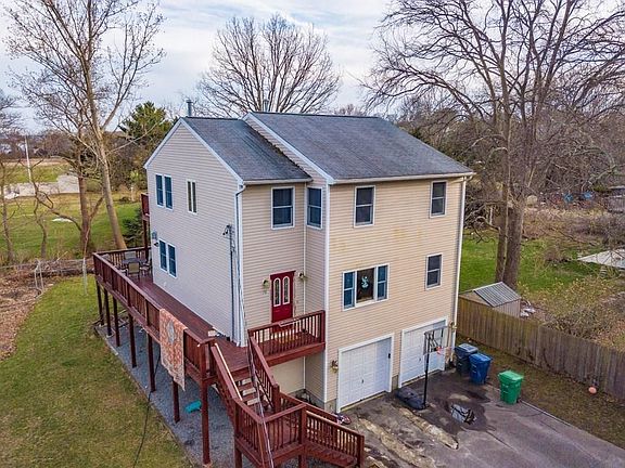 Enjoy the spectacular water views of Narragansett Bay from just about every room in the home. This well constructed 3-4 bed 2.1 home bath, was perfectly situated on the land where you get the benefits of the southern exposure. The main level boasts an open floor plan connecting the living room, dining area and working kitchen. The kitchen has a center island, stainless steel appliances and granite counter tops. Hardwoods are throughout the first floor with potential for a wood or pellet stove. Enjoy your summer days sitting on the wrap-around deck watching the boats go by or having your outdoor meals. Completing the first level is a lavette and possible 4th bed/office. Upstairs are three large bedrooms. The master suite and a second bed has their own decks perfect for enjoying your morning coffee watching the sunrise or just your relaxing time reading a good book. An oversized two car garage with additional storage and laundry room are on the ground level. This wonderful property is only a minute walk to the water's edge where you can launch your kayaks. NO Flood insurance required. Close enough to the pet friendly paths of Rocky Point where you could even walk to. Come and take a peek!