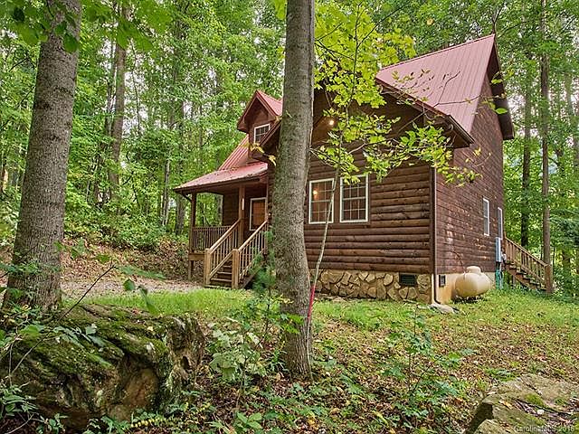 Built in 2004 this cabin comes fully FURNISHED! Ready to vacation on the first day YOU own it! One-level living with open floorplan, laundry and master suite on main floor. Soaring tongue & groove ceilings and stone 2-story fireplace. A 2nd master suite on the upper floor, alongside the 13x18 open loft overlooking the 2-story great room below. Covered front porch and 12x12 back porch. Sunny front yard, shade around the house, and a large cleared field area at the rear of the lot. Gardening welcome. Camper/RV welcome. Need to add a workshop - it's welcome too! The road access is close to level all the way to the house so year-round EASY access. Near Cataloochee Ski and Cherokee - investment/rental potential! (Back on Market because buyers were not able to qualify for the loan)