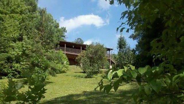 Spacious log home in the mountains with peace, privacy and views! Raised ranch on 1.2 acres with open split floor plan features stone fireplace, 3 bedrooms and 2 baths main level. Double basement garage & workshop, huge family room and 3rd bath lower level. Big front covered front porch, lower terrace and charming back porch, Koi pond and storage house. No restrictions or HOA. Super buy!