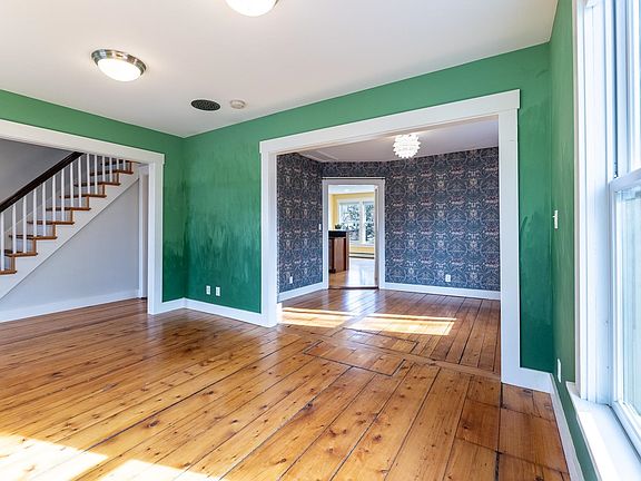 Tucked into a quiet, sought-after neighborhood, this cheerful two-bedroom home is full of charm and character. Inside, you will find warm wood floors (with radiant heat throughout the main level), a spacious eat-in kitchen overlooking the backyard, a separate dining room, and cozy living room, plus there is a handy half bath and mudroom. The full bathroom upstairs features a walk-in shower and a classic claw foot soaking tub. The detached garage has been transformed into a heated studio space - ideal for creative work or a home office but is also fully functional as a garage. Outdoor living shines with a sunny back deck, a secluded side patio with a shaded, vine-covered pergola, and a covered front porch with climbing hydrangeas adding beautiful privacy. The private garden is a hidden gem, filled with berries, perennials, mature trees, and even a whimsical tree house. Located just 8 minutes to Dartmouth College, 5 minutes to White River Junction, 10 minutes to West Lebanon, and 20 minutes to DHMC, this home offers a perfect mix of tranquility and convenience.
