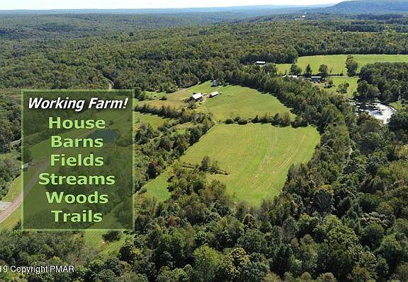 Excellent horse property with pastures & year round freshwater springs. Shady woods. Peaceful, private sanctuary with easy access to I-80. Seem too good to be true? Brace yourself; this 37.91 acre gentleman's farm has it all. Bordering part of the Lehigh Gorge Bicycle Trail, this Clean & Green property has low taxes. Farmhouse, rebuilt in 2008, has 3 beds, 2.5 baths. Open floor plan w/wood floors on main level. 2,668 s.f. barn w/large hayloft, three 10x10 stalls + small stall. 684 s.f. cattle barn has a 20x15 run & storage. Chicken coop & goat shelter. Trails meander along fields & into the woods, ideal for 4-wheeling. Blueberry bushes, fruit trees & hardwoods scattered throughout. Perfect habitat for honeybees & wildflowers. Shown by 24 hour advanced appointment only; no drive-bys please