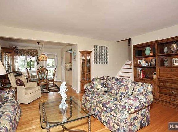Unique Tri-level split with NYC views! Home offers an entrance foyer,living room,dining room, and eat in kitchen. The 10 year old kitchen has granite counters,a custom granite table, along with a roof window for bright lighting. The second floor has three bedrooms and a 5 year old full bathroom. The third floor master bedroom offers a private setting and has roof window. There are hardwood floors through out the home. The ground level has a side door, with laundry, a half bath, a den/office and the garage. The basement has a large family room that has access to the lower deck and yard. The yard is beautifully landscaped and the setting is perfect for entertaining. The home has a new roof, new exterior doors, re-pointed chimney, sprinklers and much more. The NYC views are amazing along with the close proximity to NYC transit bus and train lines. Great home in a great town come take a look!