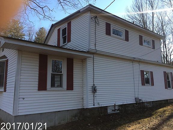 Cape styled home, featuring 3 bedrooms, large family room with walk out to deck, master bedroom on first level with walk in closet, full bathroom, 2 additional bedrooms on second level, one car garage and 1.63 acres of land to complement this home. Potential!!