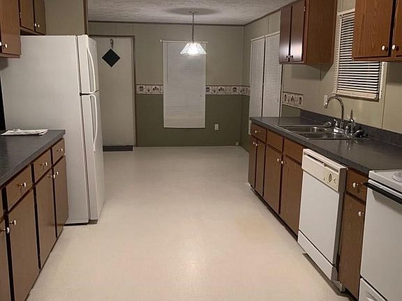 Large manufactured home on permanent foundation located in quiet rural community. Large living room, 3 bedrooms and 2 full baths. Master bath has garden tub with separate shower. Home has been well maintained. New metal roof, 3-4 years ago. Master bedroom suite stays as well as stove, refrigerator, washer and dryer. Approximately 13 miles to Horse Cave to I-65 or 12 miles to Munfordville to I-65.