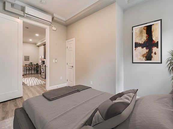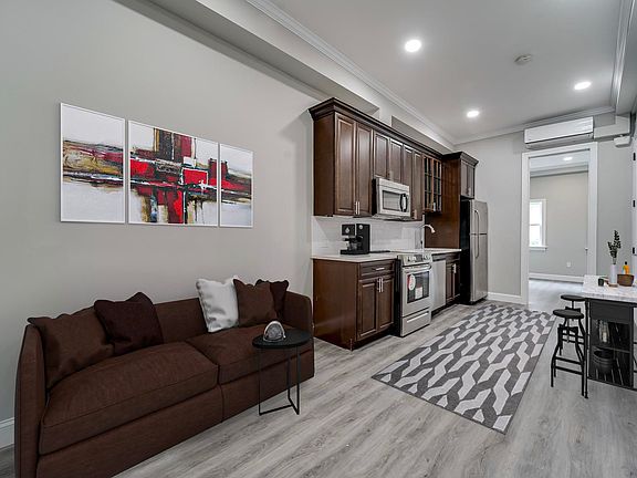 Located less than one block from Central Avenue in Jersey City Heights, and walking distance to Riverview Fisk Park with jaw-dropping NYC skyline views and 9th street Lightrail access, this newly renovated two bedroom home offers ultimate location and lifestyle, plus parking included! Beautiful brick exterior gives way to the fully updated two bedroom, two bath floorplan with classic style and all the upgrades. Timeless design shines through the split layout home with elements like classic wood casing around windows and neutral color palette. Wide plank hardwood floors, plus neutral slab tile in kitchen allow for both coziness, convenience and cottage feel. Kitchen features contrasting black quartz counters with white cabinets including accent glass displays, white tile backsplash and stainless appliances. Bathroom hosts neutral tile with mosaic accents, spacious vanity with black quartz counter plus medicine cabinet mirror for additional storage. It’s no wonder Jersey City Heights is in such high demand with its vibrant community, eclectic restaurants and shops, excellent schools, spacious parks and easy NYC access.