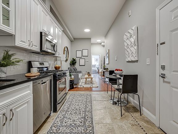 Located less than one block from Central Avenue in Jersey City Heights, and walking distance to Riverview Fisk Park with jaw-dropping NYC skyline views and 9th street Lightrail access, this newly renovated two bedroom home offers ultimate location and lifestyle! Beautiful brick exterior gives way to the fully updated two bedroom, 1.5 bath floorplan with classic style and all the upgrades. Timeless design shines through the split layout home with elements like classic wood casing around windows and neutral color palette. Wide plank hardwood floors, plus neutral slab tile in kitchen allow for both coziness, convenience and cottage feel. Kitchen features contrasting black quartz counters with white cabinets including accent glass displays, white tile backsplash and stainless appliances. Bathroom hosts neutral tile with mosaic accents, spacious vanity with black porcelain counter plus medicine cabinet mirror for additional storage. It’s no wonder Jersey City Heights is in such high demand with its vibrant community, eclectic restaurants and shops, excellent schools, spacious parks and easy NYC access.