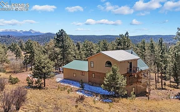 Welcome to this beautiful mountain home perfectly situated on an attractive 2.06-acre lot taking advantage of the scenic views of Pikes Peak and the Sangre de Cristo range to the south. Many fine features and amenities greet you as you enter the Great Room complete with kitchen and dining area. The vaulted hand-hewn log walls and ceiling and the wall of windows form a comfortable open and bright space. A wood burning stove adds to the warmth. Walkout to the newer (2017) large composite deck and soak in the surroundings. The main level also features a bedroom with an adjoining bath and a large mudroom/utility room with washer/dryer hookups that leads to the garage. The expansive Master Bedroom suite in the loft is open to the lower level. Enjoy the views from the clerestory windows. A jetted tub in the adjoining bath is a great place to unwind. The lower walkout level features a large Family Room with an area for a work desk. Two bedrooms and a bath offer extra quarters for family or guests. New carpeting was just installed the last week of January in several of the rooms. Pella wood windows and the efficient hot water baseboard system provide comfortable heating throughout the home. The attached garage is oversized wide with an exterior entrance. A 25-Year Rhino Shield coating has been applied to the exterior wood surfaces and along with the metal roof you will enjoy years of low maintenance. A nice mix of trees are found throughout the lot and the driveway is paved. Plan now to visit this wonderful property!