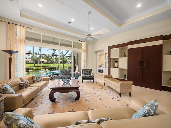 SERENITY AND SPACE WITH A SPECTACULAR WATER VIEW!! DOUBLE GLASS DOORS LEAD ON TO THIS STUNNING THREE BEDROOMS PLUS DEN HOME THAT STILL SHOWS LIKE A NEW MODEL. THE KITCHEN HAS BEEN TOTALLY REMODELED WITH TALL, MATCHED WOOD CABINETRY, BOOKEND GRANITE COUNTERTOPS STAINLESS STEEL APPLIANCES, GAS COOKTOP, TOUCHLESS SINK FAUCET AND SMASHING GLASS TILE BACKSPLASH. ADDITIONAL FEATURES INCLUDE WOOD FLOORS IN ALL THE BEDROOMS, DESIGNER INTERIOR PAINT, A GORGEOUS ENTERTAINMENT WALL IN THE FAMILY ROOM, AN OFFICE WITH CUSTOM BUILT-INS, A HOUSE GENERATOR, TOTAL HURRICANE PROTECTION, SEPARATE GOLF CART GARAGE AND PAVER PATIO WITH POOL AND SPA. THIS IS A TOTALLY MUST-SEE HOME. PURCHASE OF A GOLF EQUITY MEMBERSHIP, $130,000, REQUIRED AT CLOSING.