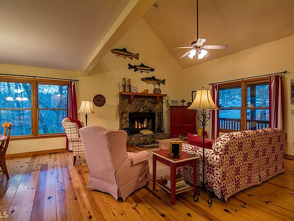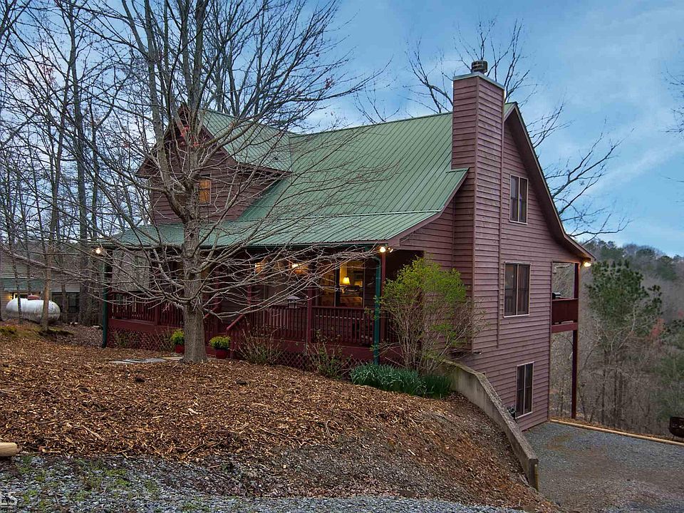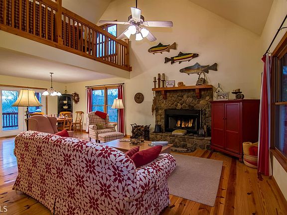 Immaculately maintained metal-roofed cabin with lake & mountain views! Cabin is located within minutes to boating, fishing & swimming at one of Georgia's best kept secrets...beautiful Carters Lake! Great room features a stone fpl, open vaulted ceilings, gorgeous wood floors & lots of light. Spacious kitchen with breakfast bar & large dining space that opens to covered porch overlooking beautiful views. Cabin offers lots of room for large or growing family, with 3 bedrooms, 3 full baths plus large open loft & bonus rec room on the terrace level. Plenty of storage including a one car garage, perfect for storing all of your lake toys! Perfect for full time home, vacation home or vacation rental investment! Most furniture is negotiable via separate bill of sale.